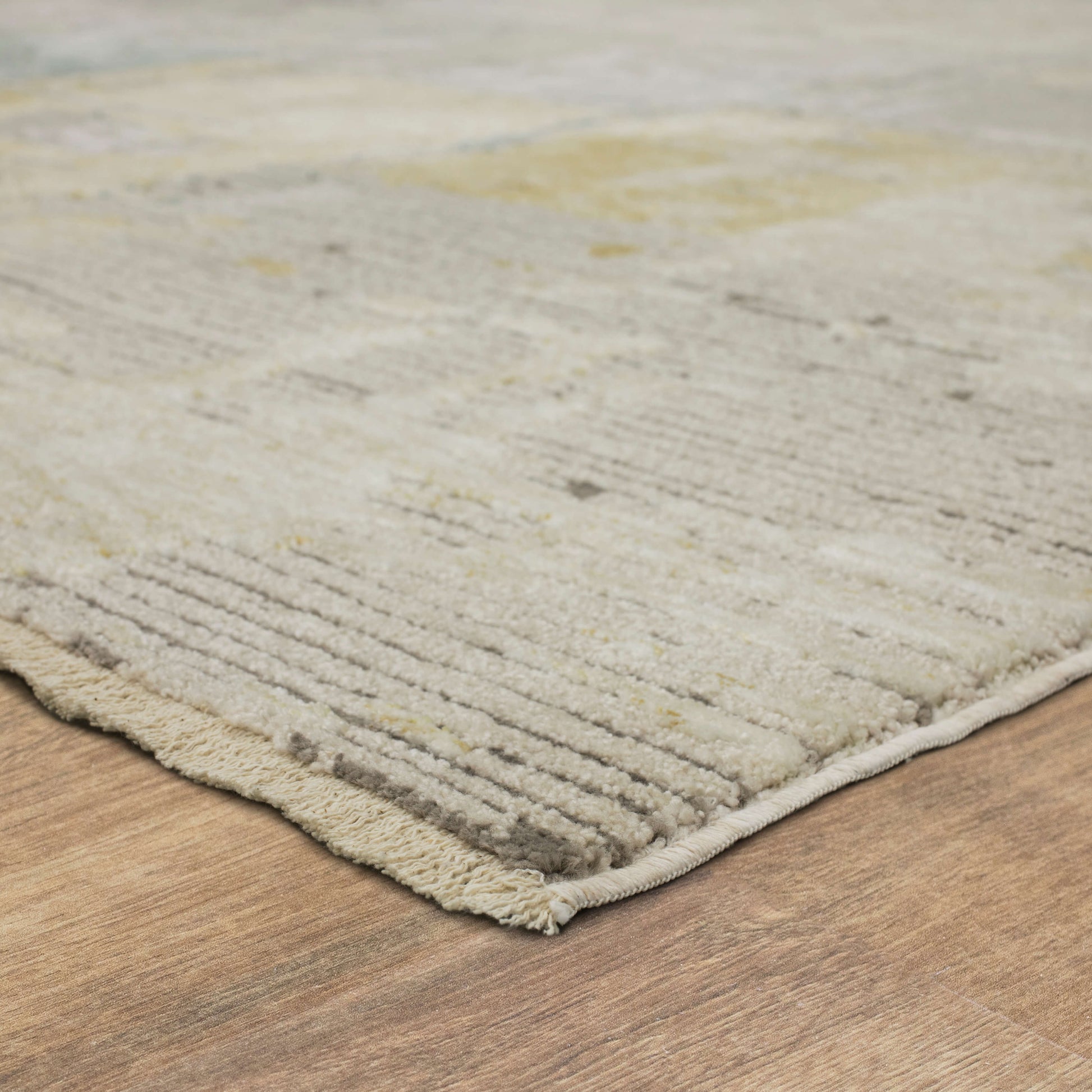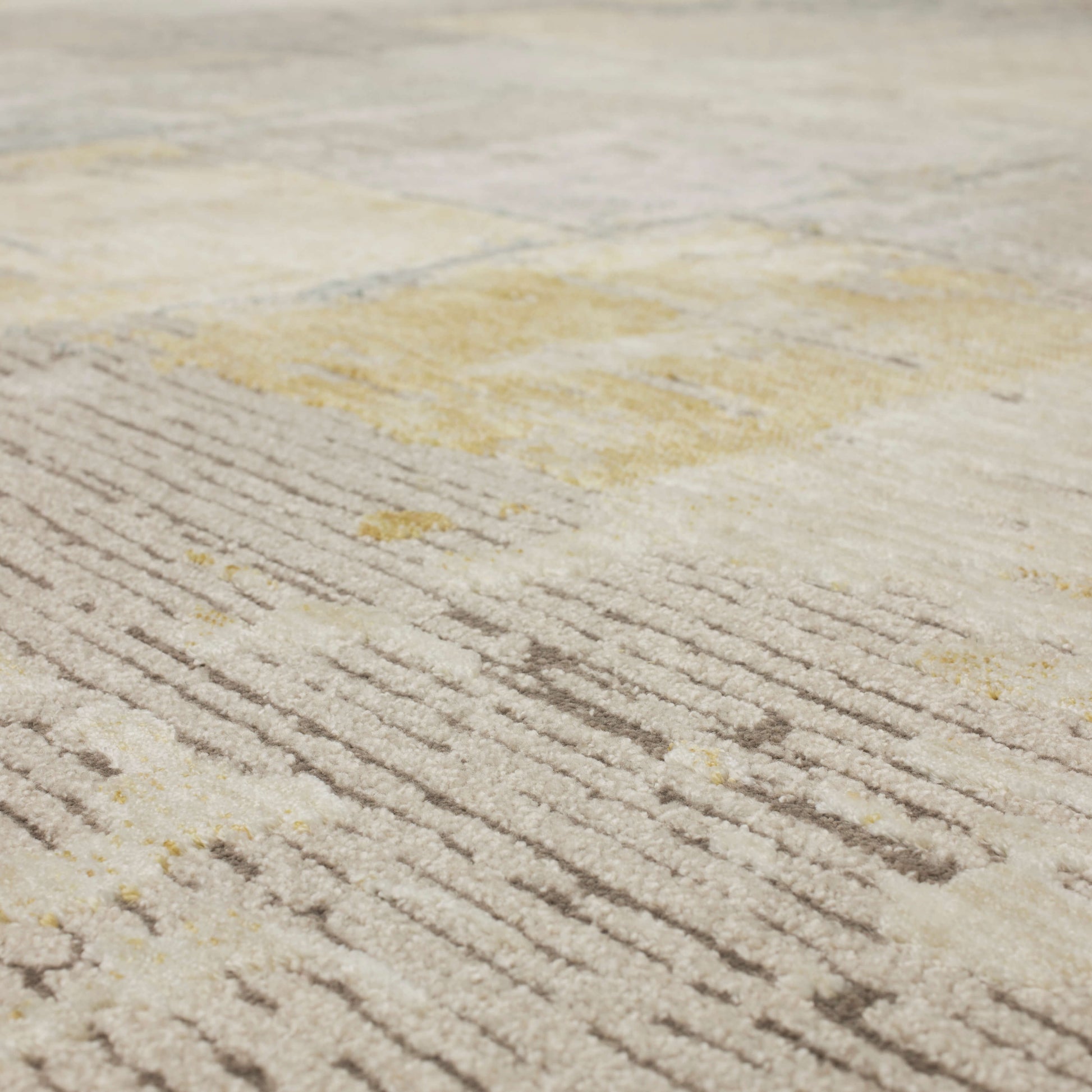 This stunning Memento Collection by Karastan Rugs is the perfect statement of sophistication for any room in the home. Its velvety cut pile is highly textural and richly colored in a modern palette of sand splashed with olive green, rust red, grey, ivory and gold. Space dyed, 8MM pile height with an assortment of distressed designs to choose from including ornate and wispy clouds of cross-hatched linear pattern.