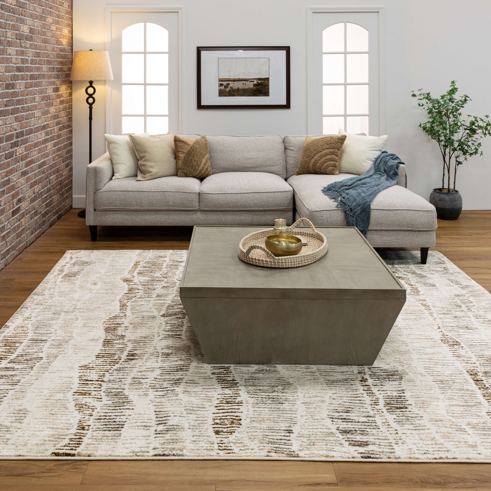 Creative and contemporary, the Milestones Collection by Drew & Jonathan Home brings intriguingly modern and invitingly livable style to any room with its abstract designs and neutral grey, beige, and tan color palette combinations. Crafted of sumptuously soft polyester, this silky yarn also offers dependable durability and illustrious color clarity that is designed to thrive in high traffic spaces around your home.