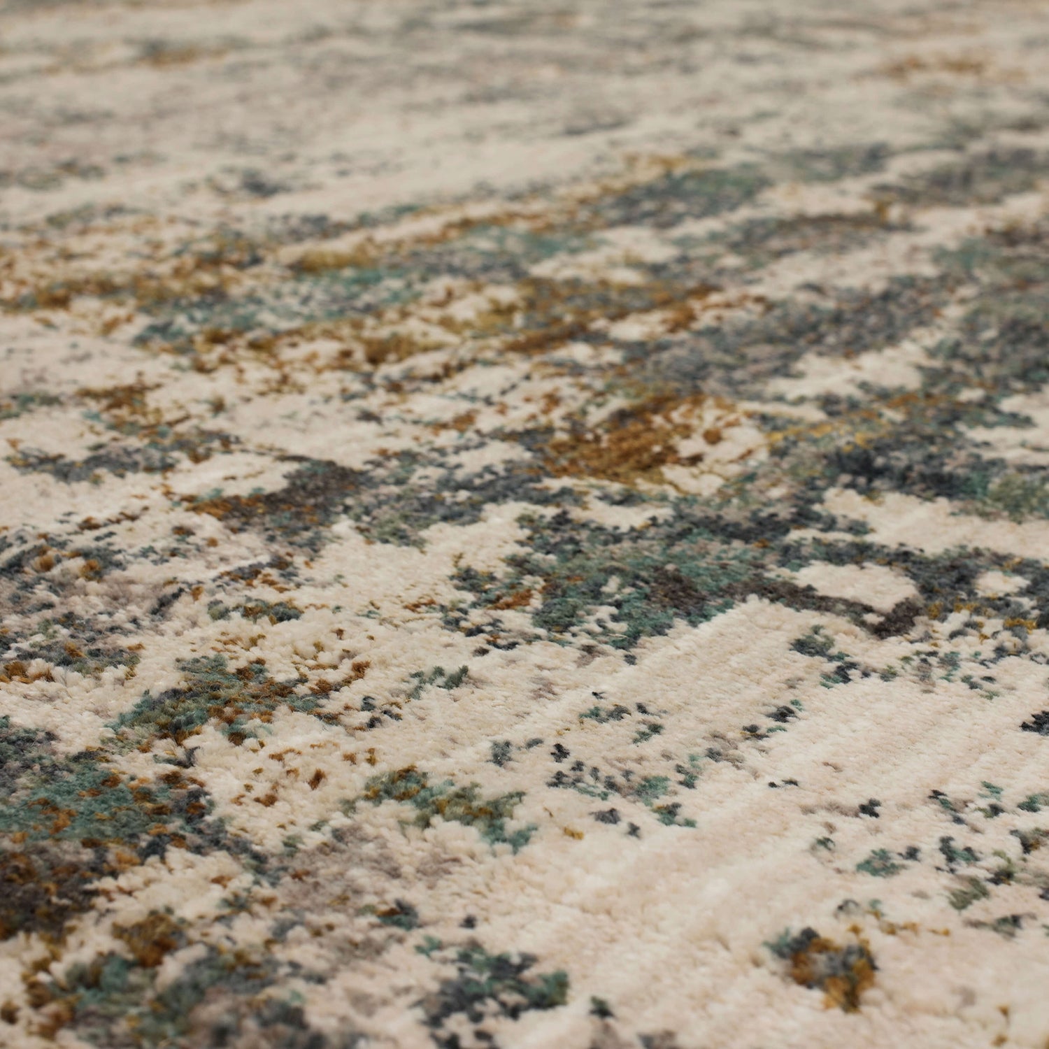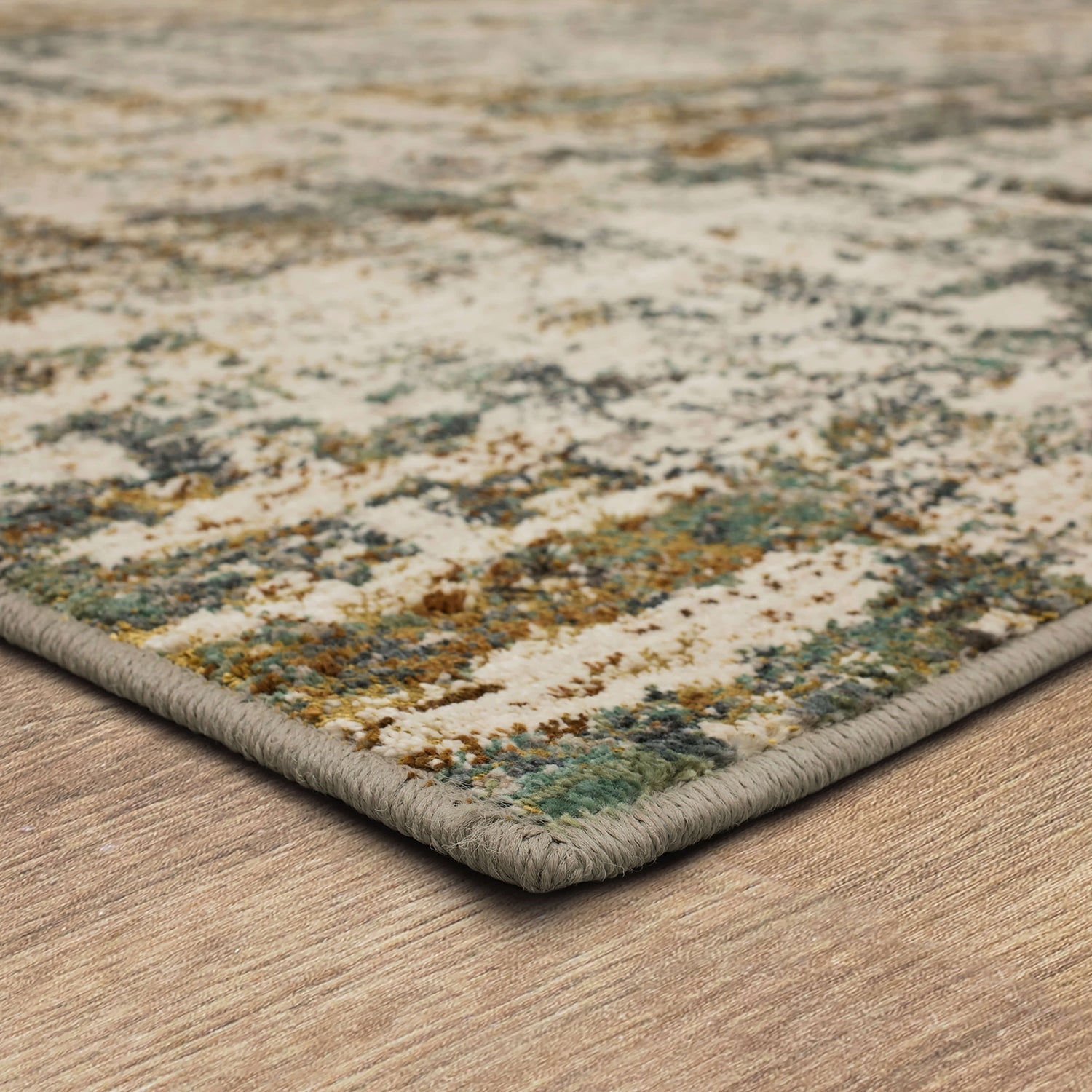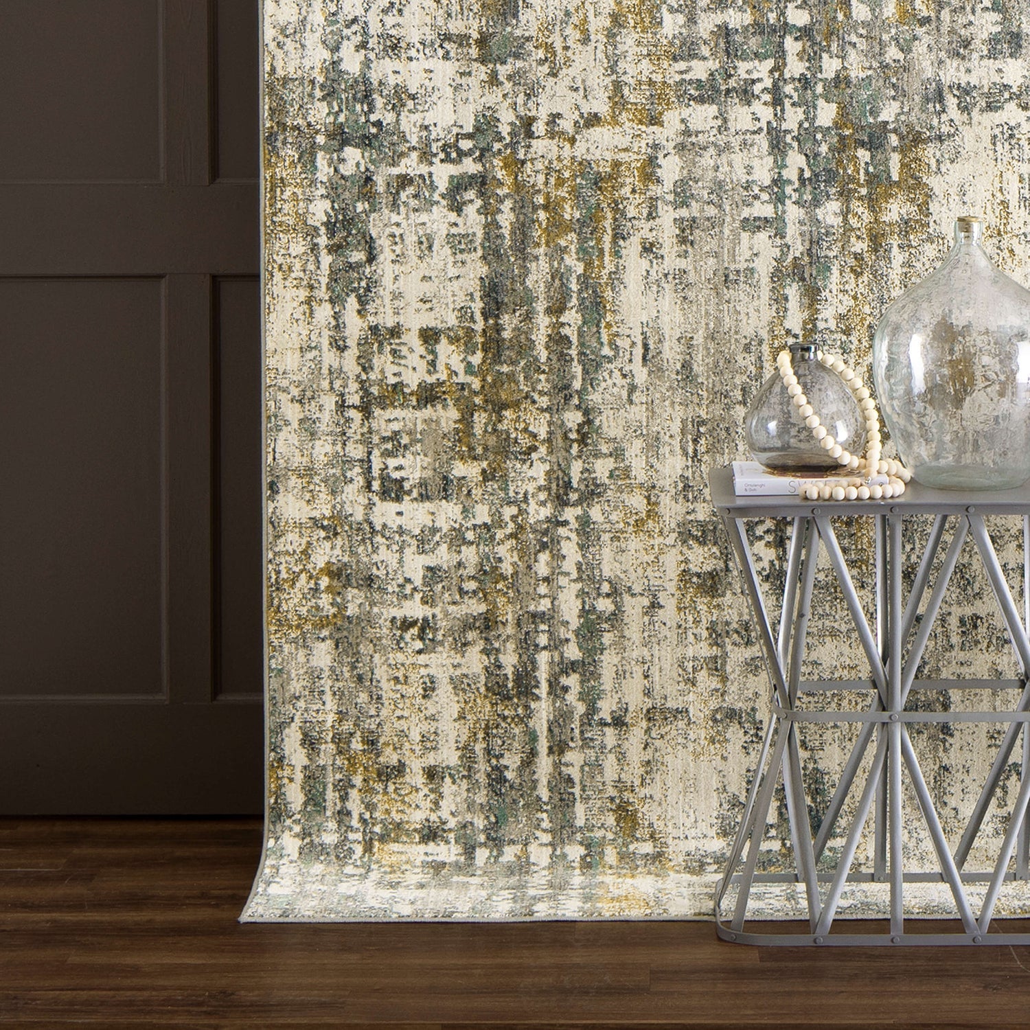 An abstract painterly inspired hounds tooth pattern is distressed with washes of oyster, grey, denim blue, gold, tobacco, aquamarine and gunmetal in the artistically influenced motif of Karastan Rugs' modern Caballo Area Rug. Crafted with EverStrand™ premium polyester yarn, the woven designs of Karastan Rugs' Montreal Collection offer an irresistibly plush touch, inherent stain resistance and vivid color clarity. Dependably durable and sumptuously soft, EverStrand™ is produced from recycled plastic bottles and offers a stylish and sustainable solution for environmentally conscious consumers.