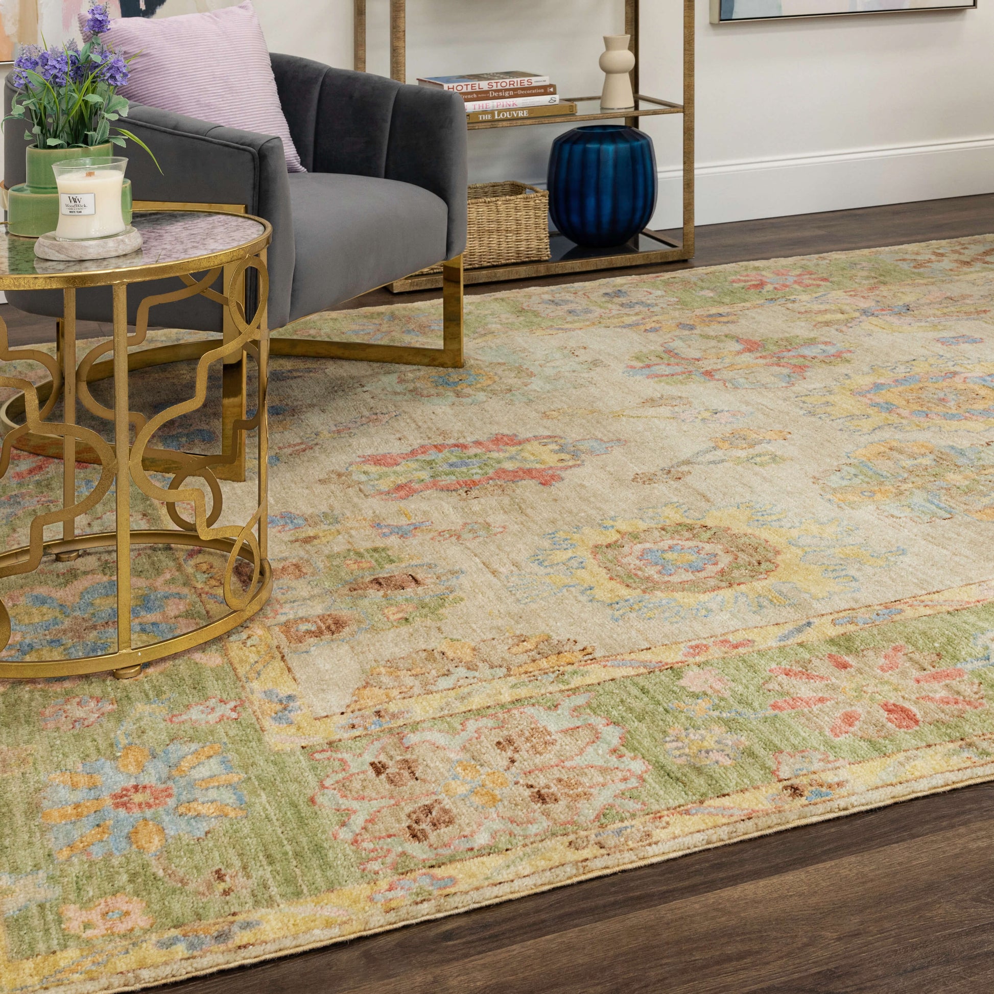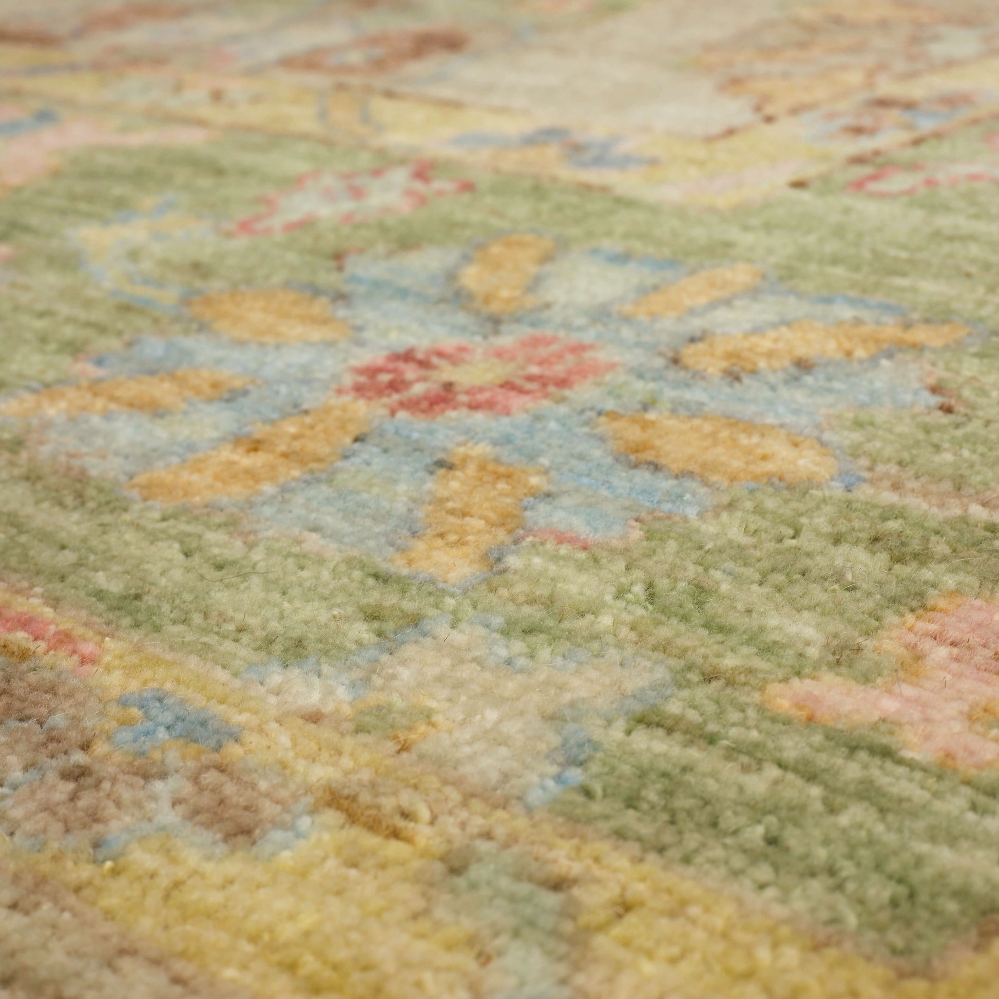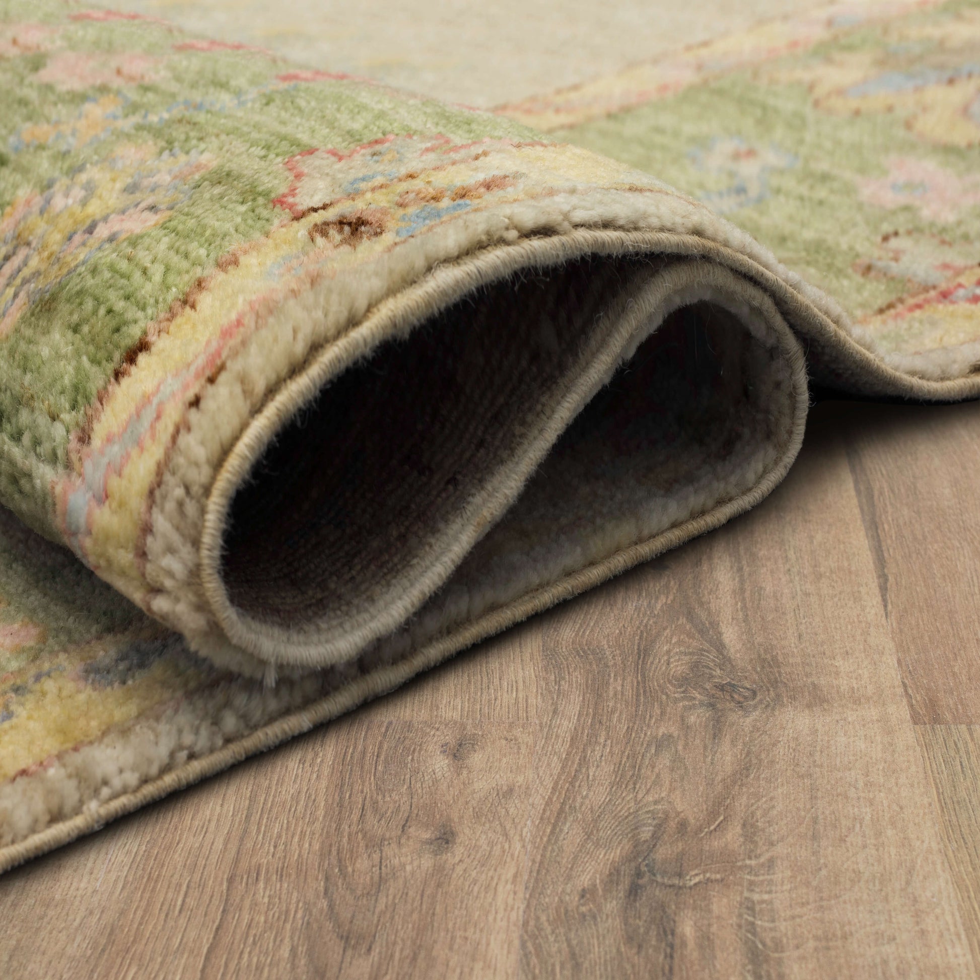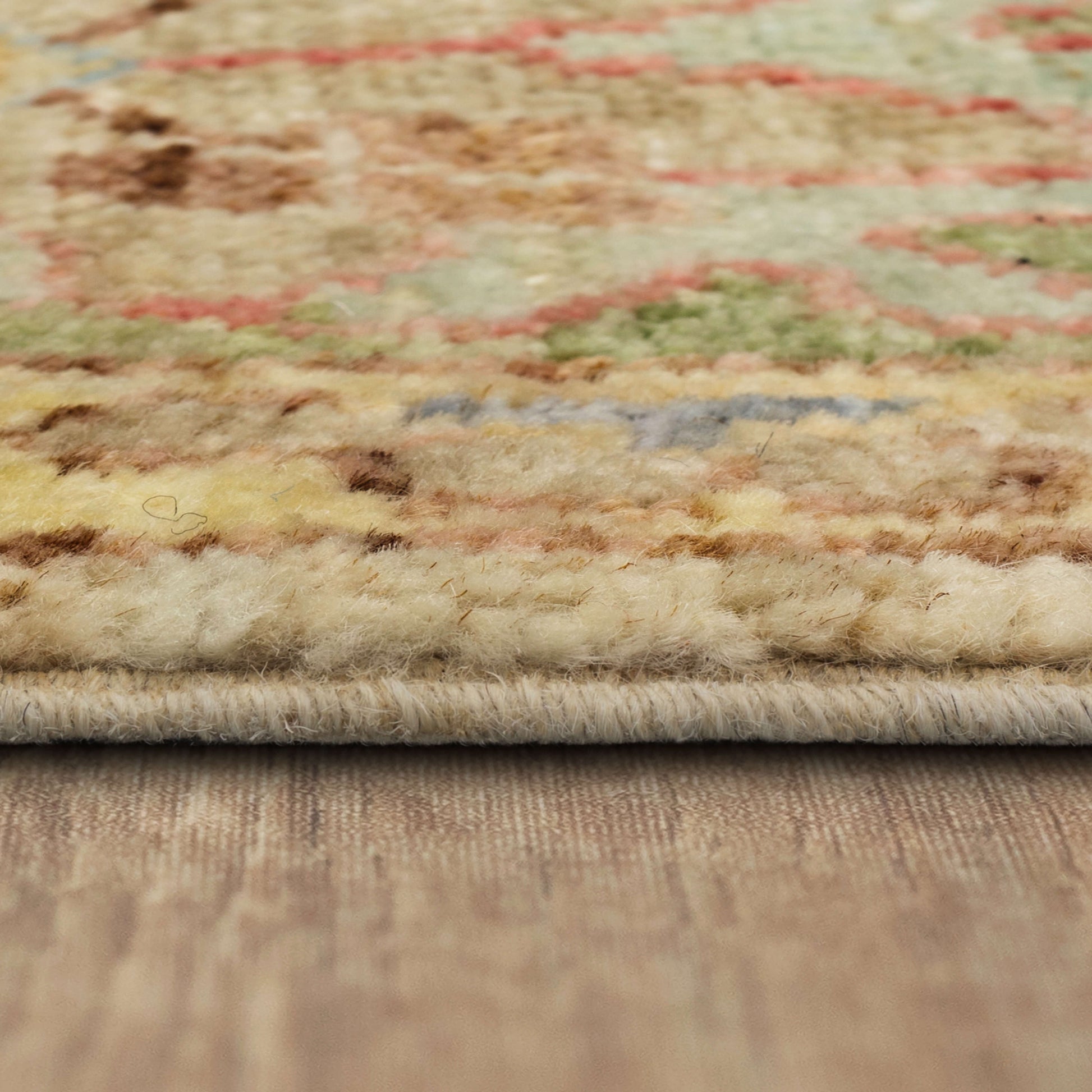 The exquisite Mystique Area Rug Collection by Karastan Rugs, inspired by Western Turkey's Oushak designs, features exuberantly optimistic accent colors with detailed Oushak abstract patterns. Expertly hand knotted in Pakistan with 100% wool, these area rugs feature natural soil and stain protection offering dependable durability.