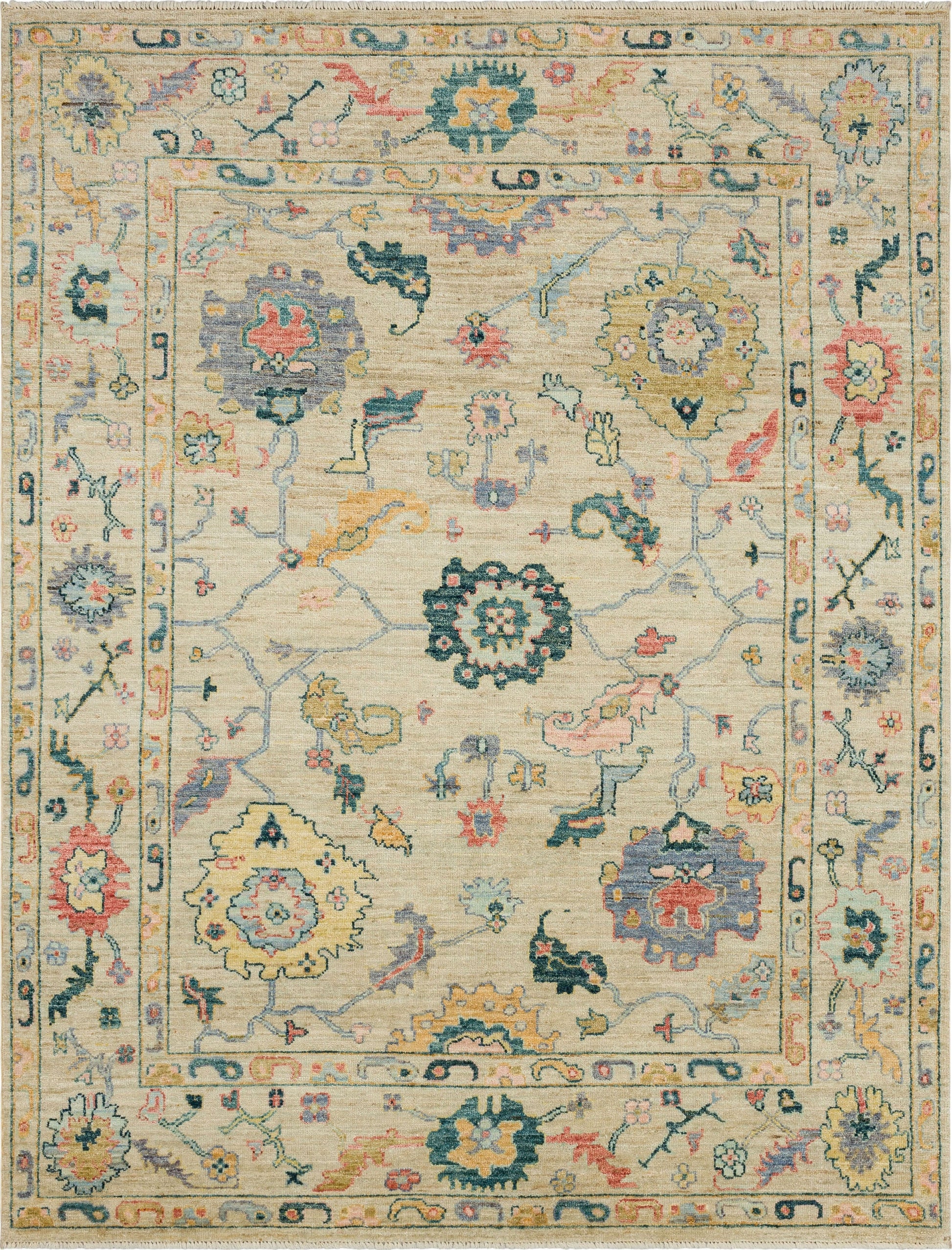 The exquisite Mystique Area Rug Collection by Karastan Rugs, inspired by Western Turkey's Oushak designs, features exuberantly optimistic accent colors with detailed Oushak abstract patterns. Expertly hand knotted in Pakistan with 100% wool, these area rugs feature natural soil and stain protection offering dependable durability.